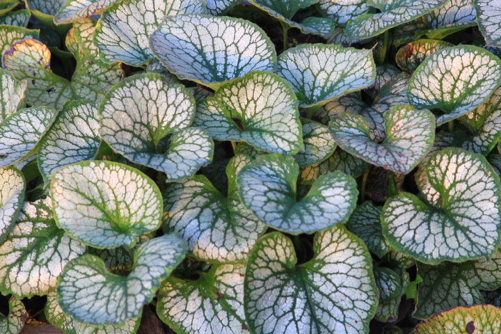 Бруннера крупнолистная Сиа Хеарт - Brunnera macrophylla Sea Heart . Многолетнее корневищное растение высотой до 40 см. Листья сердцевидные, серебристые с тёмно-зелёным узором. Цветёт в мае мелкими голубыми цветочками, похожими на цветки незабудки. Неприхотлива и влаголюбива. Предпочитает полутенистые участки с умеренно плодородной почвой без застоя воды. Благодаря развитой корневой системе кустам бруннеры не страшен сорняк. В отличии от многих других растений, она прекрасно цветет без солнечных лучей и не болеет. Она рано просыпается после зимы и почти сразу цветет. Такое растение извещает о приходе весны и раньше всех украшает сад мелкими цветами, но и после цветения бруннера не теряет декоративных функций. Создав композицию из многолетников можно не волноваться о ней, ведь она долго и преданно украсит Ваш приусадебный участок.