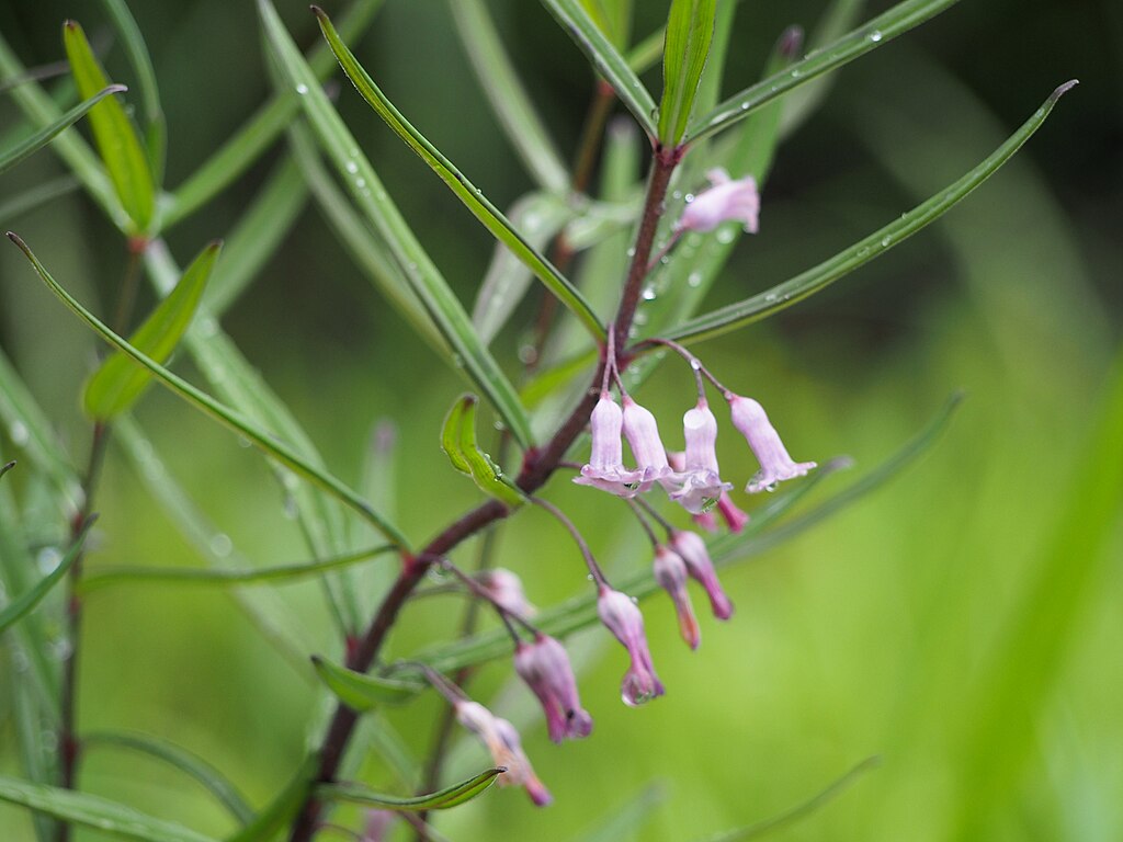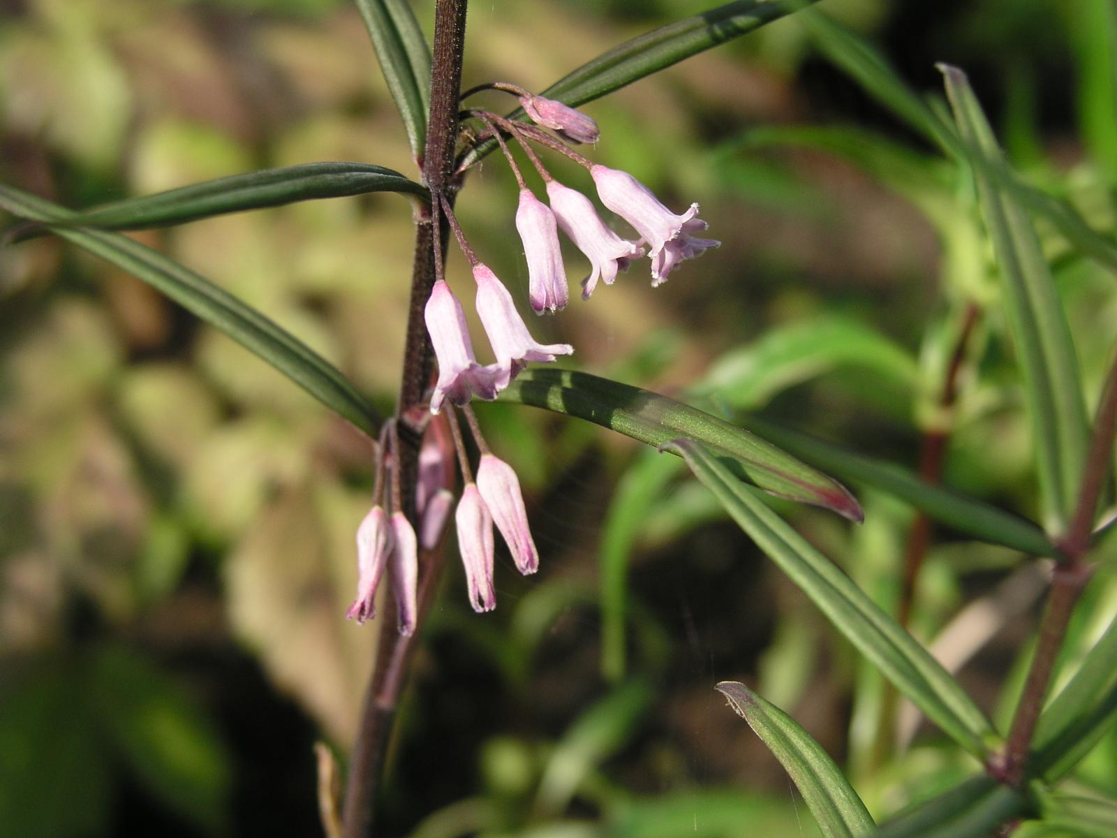 Купена кривостолбиковая - Polygonatum curvistylum - Редкое многолетнее растение с тонкими прямостоячими стеблями, на верхушке слегка наклонённые, высотой до 37 см. Корневище ползучее беловатое и мясистое. Листья темно-зеленые с параллельными прожилками, ланцетовидные или линейно-ланцетовидные, при основании клиновидные, узкие, заостренные, с обеих сторон гладкие (длиной до 7 см., шириной до 1,2 см.). Цветы розовые трубчатые или колокольчатые появляются в пазухах листьев по 1-3 шт.( длиной 10—13 мм., шириной 2—2,5 мм. шириной). Около середины немного суженные, с расходящимися продолговато-овальными тупыми, на кончике зубчиками. В начале мая при появлении всходов листья Купены curvistylum прижаты к низу, как бы обхватывая стебель. Это способ характерный для растений, где возможны поздние заморозки. Однако это объяснение не подразумевает никакой нежности, это просто дикая стратегия, подобная тому, как некоторые многолетние луковичные растения (фритиллярии) прижимают свои цветы к земле, чтобы избежать холода, а затем внезапно распускают их. Время цветения конец мая-начало июня. Плод — красная ягода. Предпочитает расти в тени или полутени на плодородных, дренированных и умеренно влажных почвах. Её ценят за морозоустойчивость и неприхотливость. Отзывчива на подкормки органическими и минеральными удобрениями. Прекрасно сочетается в миниатюрных композициях полутенистого сада.